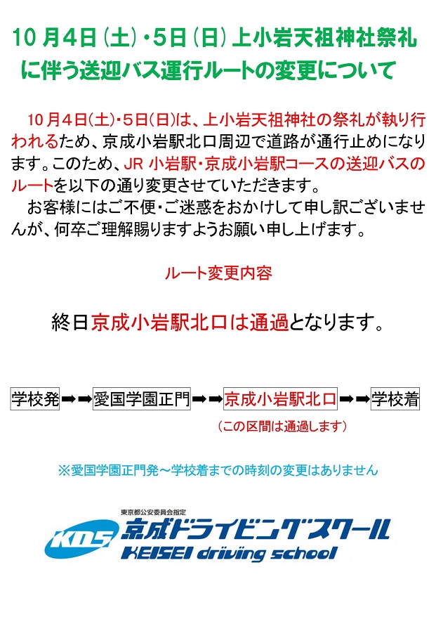 10/4(土)・5(日)「京成小岩駅北口」停留所ご利用のお客様へ
